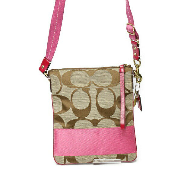 外ポケット付き シグネチャー 斜めかけ 10129 コーチ カーキ×ピンク ショルダーバッグ COACH 【SS】 【中古】