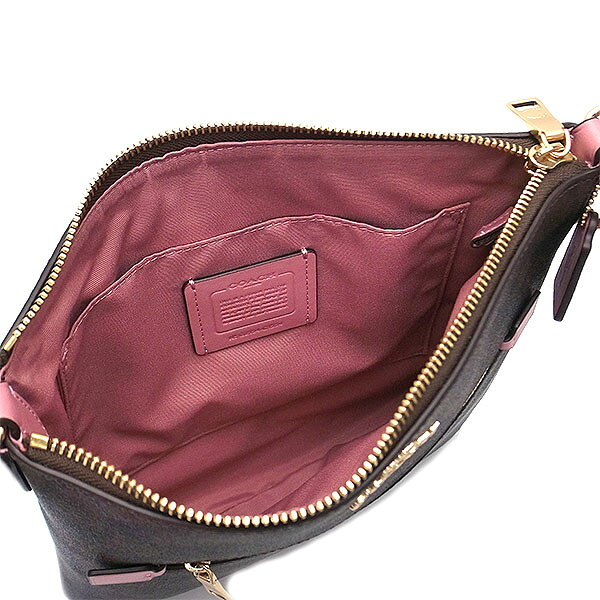 ■商品説明素材PVC(ポリ塩化ビニル)コーティングキャンバス レザーカラーブラウン×ピンク サイズ約横26.5cm×縦24.5cm×幅4cm / ショルダーの長さ:約110-128cm(斜めがけ可)、ピッチ幅:3cm / 重量:約480g/※A4サイズ収納不可付属品なし仕様ファスナー式開閉 / 内側:オープンポケット×1/外側:オープンポケット×1修理についてこちらの商品は、COACH/コーチ/カスタマーセンターにて修理可能です。