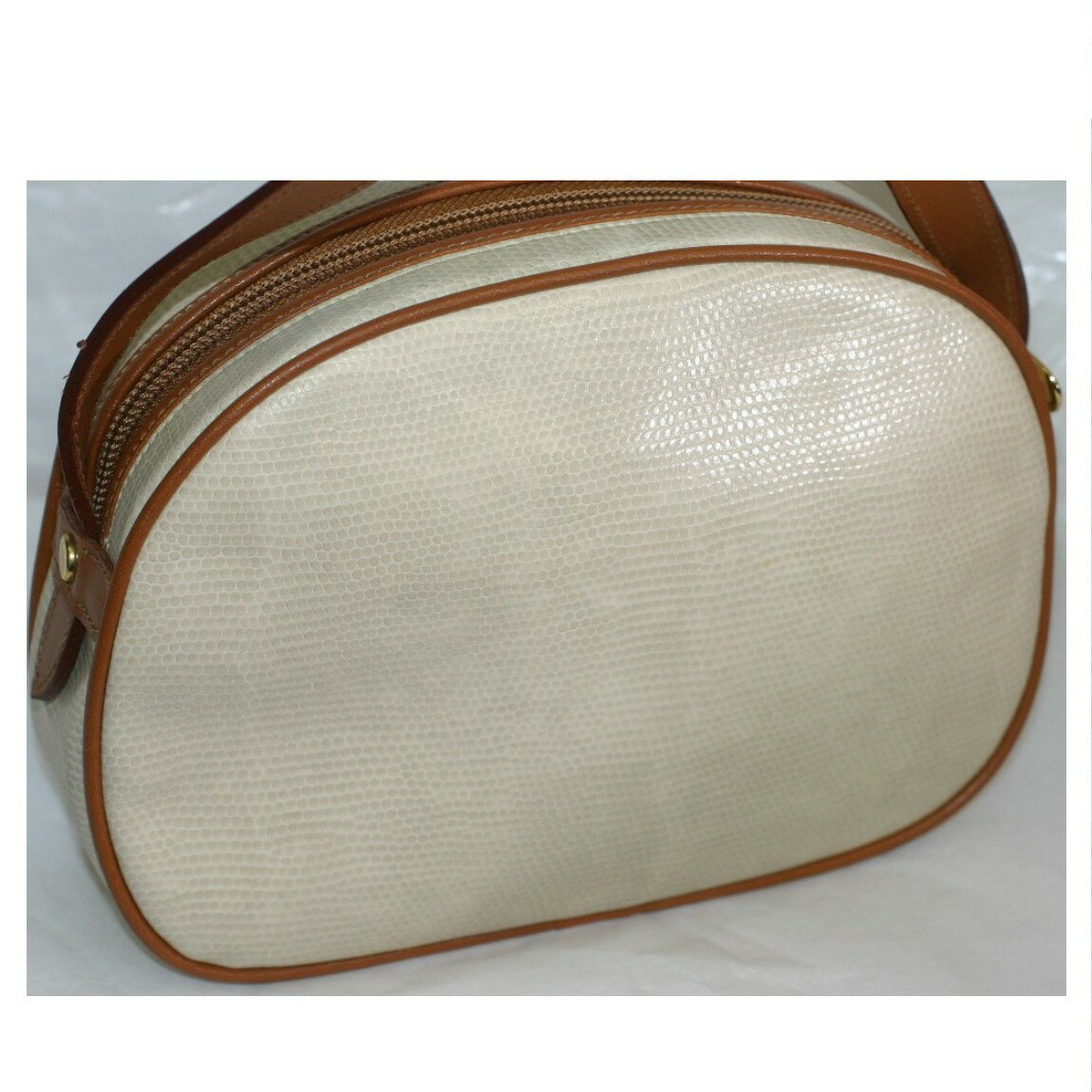 【中古】本物美品ニナリッチ女性用斜め掛け可能ショルダーバッグ茶色革xリザード模様型押し サイズW20H14,5D5,5cm ○C12-174-3