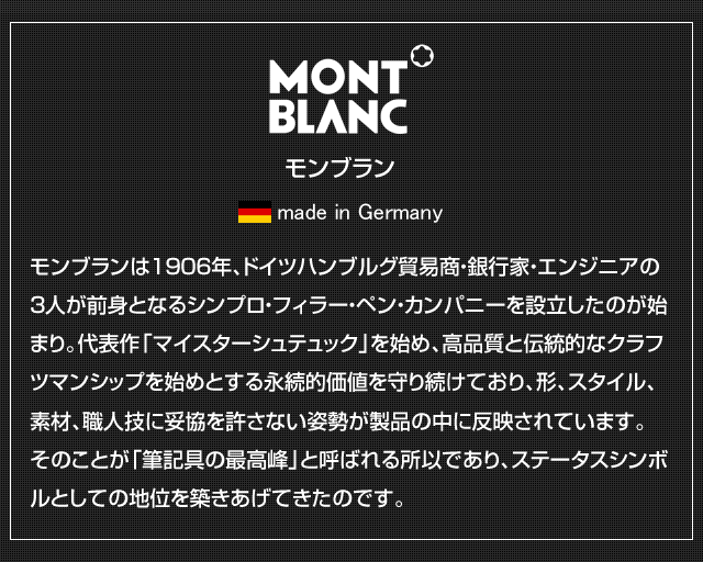 【サイズ/重さ】・長さ:約134mm・最大軸径:約13mm(クリップ除く)・重さ:約43g 【機構】・ツイストメカニズム【初期装填芯】・モンブラン ボールペン替芯(ブラック/M)【仕様】・ボディ:ブラックプレシャスレジン・クリップ:プラチナコーティング、レッドラッカーストライプ、シリアルナンバー【付属品】 ・専用化粧箱 ・モンブラン国際保証書(説明書兼保証書) ※掲載商品の色につきましては、ご覧になるモニターの機種、OSとその設定の違い、また、撮影・画像加工等の事情により再現性を保証するものではございませんのであらかじめご了承ください。