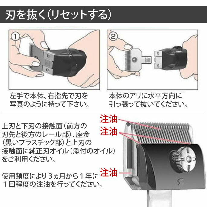 バリカン本体には、足先やお腹、お尻など細かな部分など基本部分に大活躍のスピーディク1mm替刃がセットでついてきます! バリカン仕上げの他に、足先や顔はハサミで細かい部分は仕上げてあげてください。