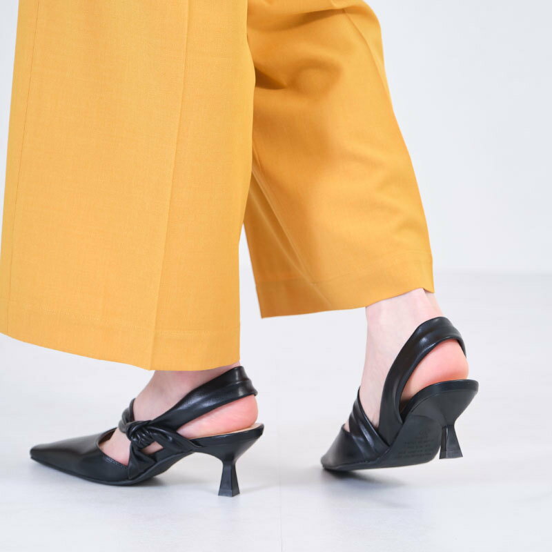 立体的なツイストデザインが女性らしいパンプスは、シャープなつま先とくびれたカーブヒールでエレガントさをプラスしてくれる1足。
