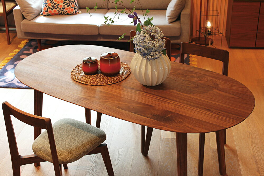 オーバル型の天板が温かな印象の「Rube」は形はもちろん、体に触れる滑らかな丸みが心地良い、ホッとする優しいぬくもりを感じられるダイニングテーブルです。