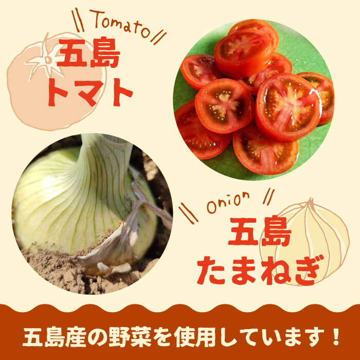 トマトや玉ねぎなども、もちろん五島で育てられた材料! 化学調味料や着色料を使わずに無添加を目指し、素材そのものの旨味をしっかり味わえる逸品です。
