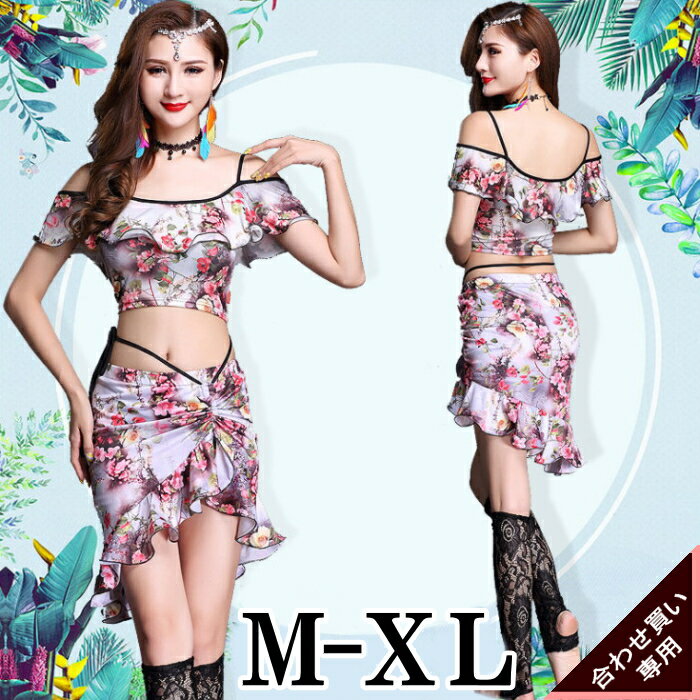 【合わせ買い専用】セットアップ トップス スカート ショートパンツ付き 大きいサイズ 花柄 上下セット チョリ ショート丈 オフショルダー 三角ヒップスカーフ レッスンウェア ベリーダンス衣装 ラテンダンス 社交ダンス アジアン ダンス衣装 L-XL ミカドレス cr256-aws