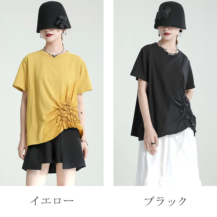 商品番号 md1-006z サイズ(cm)※B/W/Hは推奨サイズ ■Mサイズ 丈:54 / 肩幅:38 B:80-94 / W:60-80 カラー イエロー/ブラック 素材 ポリエステル / 伸縮性なし モデル 167cm 詳細 シックなワントーンにスタイリッシュなデザインが目を惹く、半袖仕立てのトップスです。