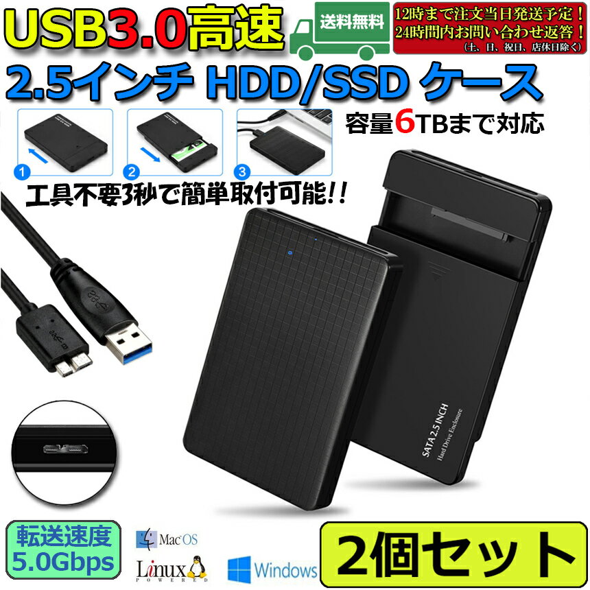 USB3.0 2.5インチ 2個セット HDD/SSDケース USB3.0接続 SATA2.0/3.0 9.5mm/7mm 外付けハードディスク 5Gbps 高速 6TBまで UASP対応 透明シリーズ ポータブル SSD ドライブ ケース SATA USB 変換ボックス ネジ 工具不要 簡単着脱 Mac Windows Linux PS4 PS3 XBox HDTV等対応