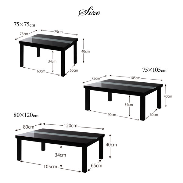 ■75×75cm 天板対応(正方形)掛け布団:(約)185×185cm 敷き布団:(約)190×190cm ※適応可能なこたつ机天板サイズ:60〜80×60〜80cm
