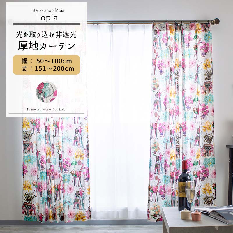 カーテン サイズオーダー 幅50〜100cm 丈151〜200cm【YH803】トピア [1枚] インド ゾウ カラフル アジアン エスニック エスニック柄 アニマル おしゃれ かわいい 個性的 インパクト ピンク グリーン イエロー 緑 リビング ダイニング 寝室 OKC5