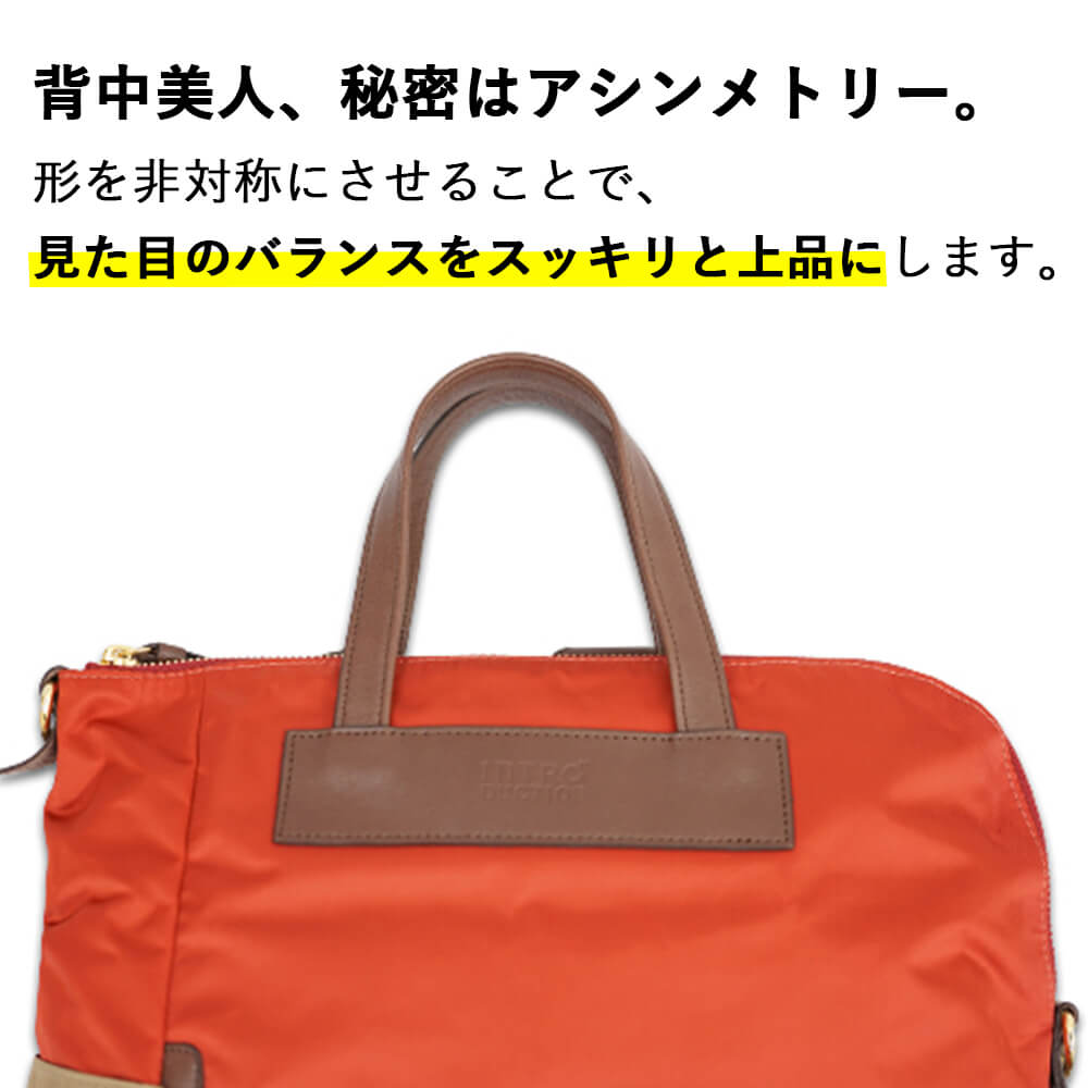 Airly 3wayリュックがスリムに見える秘密は、形と色のアシンメトリーにあります。
