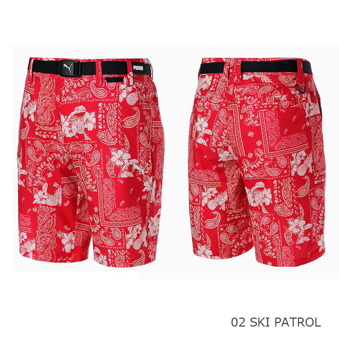 2022春夏シーズン PUMA GOLF WEARコレクション(PGW)リゾートゴルフがイメージのトロピカルなバンダナパッチ柄を全面にプリントしたサマーショーツ。