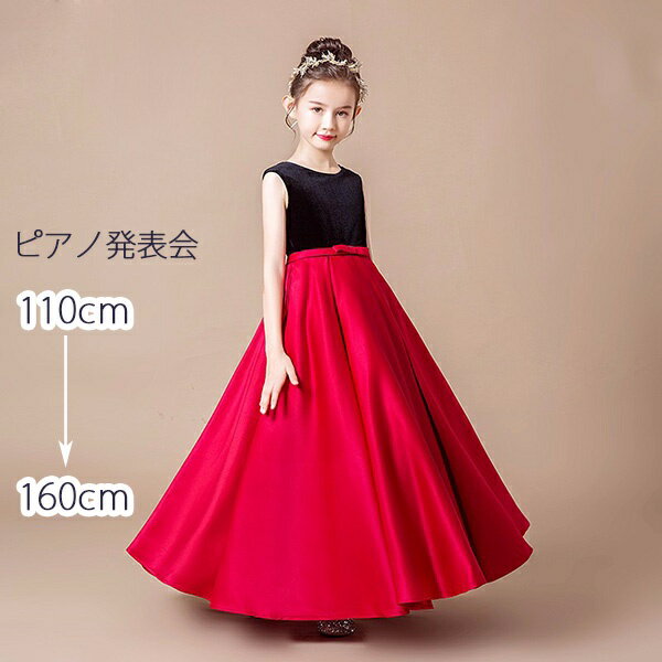ピアノ発表会 中学生 ワンピース ドレス 女の子 ロング丈 ファスナー 子供ドレス お姫様 着やせ 上品 エレガント 結婚式 フォーマル キッズドレス 黒 赤 dg585ze
